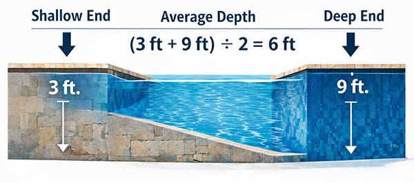 Average Depth: (3 + 9) ÷ 2 = 6 feet.