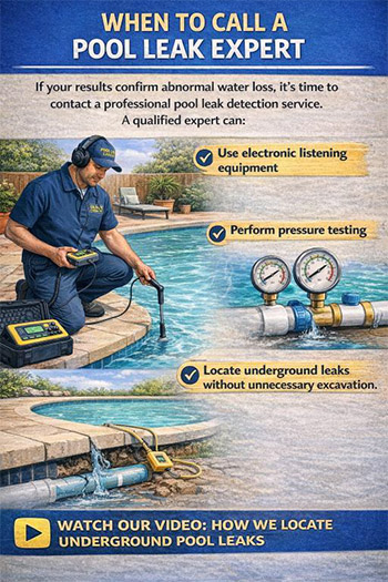 If your results confirm abnormal water loss, it’s time to contact a professional pool leak detection service. A qualified expert can: