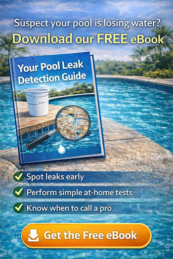 Download our FREE Pool Leak Detection Ebook and learn how to spot leaks early, perform simple at-home tests, and know when it’s time to call a professional.